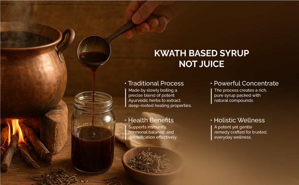 Nari-Setu is prepared by using a traditional kwath preparation method where the herbs are slow-boiled to allow their natural properties to be better released, helping to provide women with maximum absorption and effectiveness. The liquid format allows for easy ingestion and flexible dosing as part of a woman's daily wellness routine.